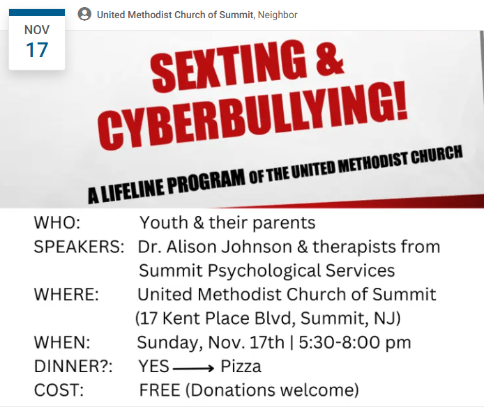 - Details: A free community event focusing on mental health awareness. Hosted by the United Methodist Church of Summit.